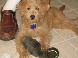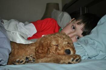 Dear Debbie, I just wanted to let you know that our 4 1/2 month old labradoodle- "Ginger" is an awesome dog! For our first time owning a dog, we could not have asked for a better experience! She loves our kids, other dogs, and basically anyone she meets. We are in puppy training classes where she is excelling not only with basic commands, but sit up and roll over (very cute!). She is housebroken and crate